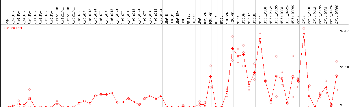Lus10003623Closest At gene: AT5G44070 (ATPCS1, ARA8, CAD1) CADMIUM SENSITIVE 1, ARABIDOPSIS THALIANA PHYTOCHELATIN SYNTHASE 1, phytochelatin synthase 1 (PCS1) (.1)