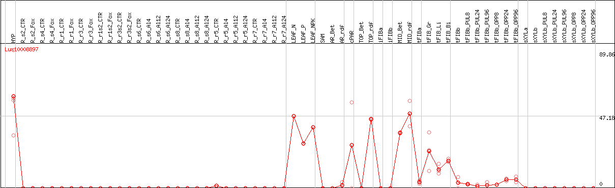 Lus10008897Closest At gene: AT2G02450 (LOV1, ANAC034, ANAC035) LONG VEGETATIVE PHASE 1, Arabidopsis NAC domain containing protein 34, NAC domain containing protein 35 (.1.2)