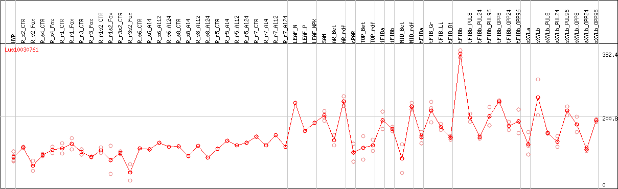 Lus10030761Closest At gene: AT1G25220 (WEI7, TRP4, ASB1) WEAK ETHYLENE INSENSITIVE7, TRYPTOPHAN BIOSYNTHESIS 4, anthranilate synthase beta subunit 1 (.1.2)