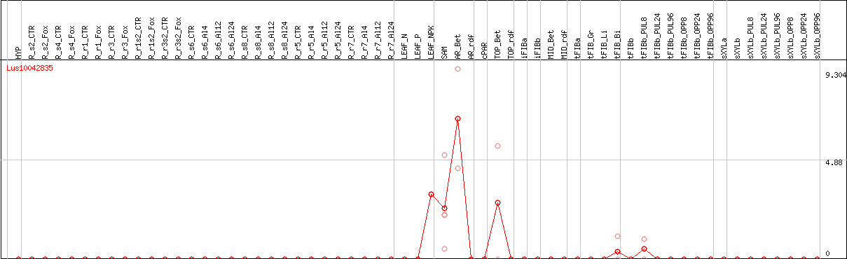 Lus10042835Closest At gene: AT4G18197 (PEX17, ATPUP7, AT4G18200) PEROXIN 17, ARABIDOPSIS THALIANA PURINE PERMEASE 7, purine permease 7 (.1)